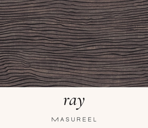 Masureel Wallpaper Collection Ray is a study of light in motion ... Ray is born from a fascination with the way light touches the world. The collection explores this quiet choreography: shifting lines, the suspended rhythm of a wave frozen mid-flow, the gentle play of brightness filtering through a forest canopy.