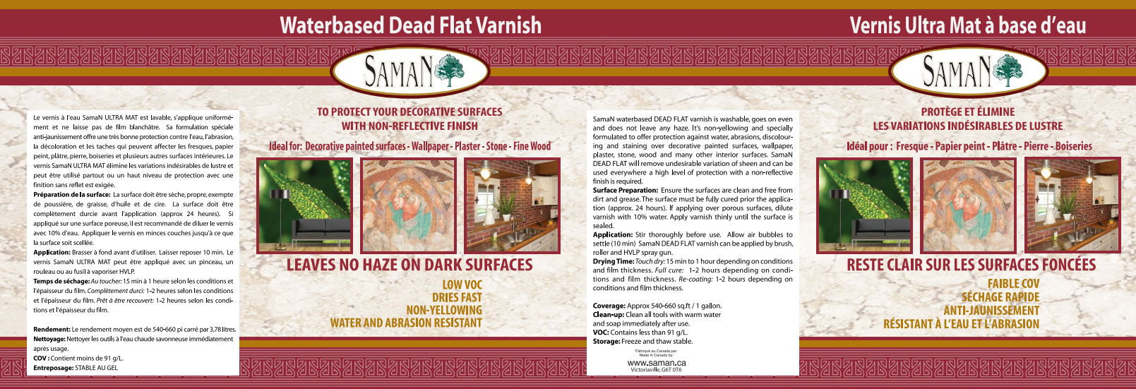 This water-based, 100% acrylic varnish is specially formulated to protect interior painted surfaces like frescoes, woodwork, stone, plaster, and wallpaper—without altering their appearance. It dries fast, has a low odor, and delivers a durable, non-yellowing dead flat finish that won’t compromise your design.
